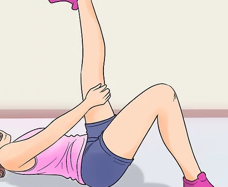 손을 가져와 오른쪽 허벅지 뒤를 잡으세요.